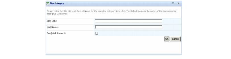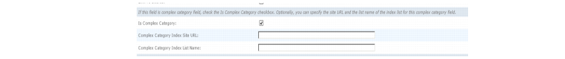 b Select Complex Category as the Field Type. Enter a Complex Category Index Site URL and List Name. This name must the same as the list name entered in Step 5 (in our example, Discussion Categories).